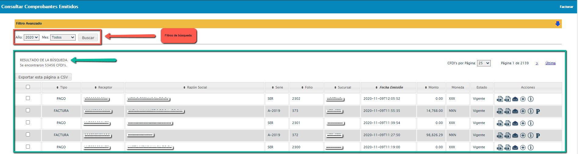 Verifica la visibilidad de los CFDI´s con ayuda de los filtros de búsqueda ubicados en el módulo de