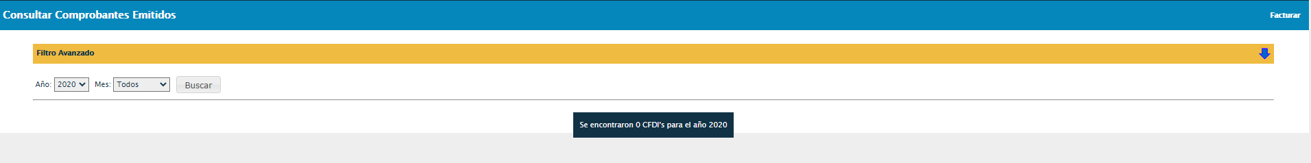 En caso de que el resultado de la segunda búsqueda siga siendo negativo y la pantalla de Consultar Comprobantes Emitidos sea como esta: