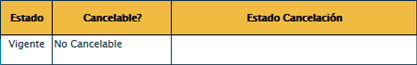 - Estado UUID: donde aparecerá el número 201, lo que significa que la solicitud de cancelación procedió correctamente.