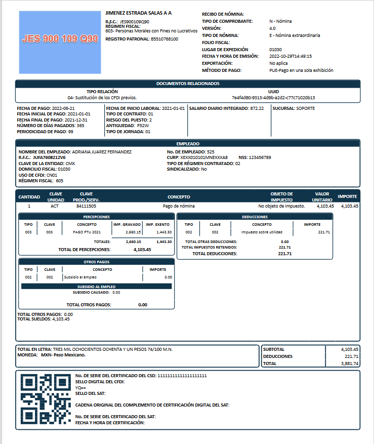 NOTA. Si el recibo que se encuentra elaborando es de asimilados a salarios se omitirá el campo “Núm. De Seguridad Social”.