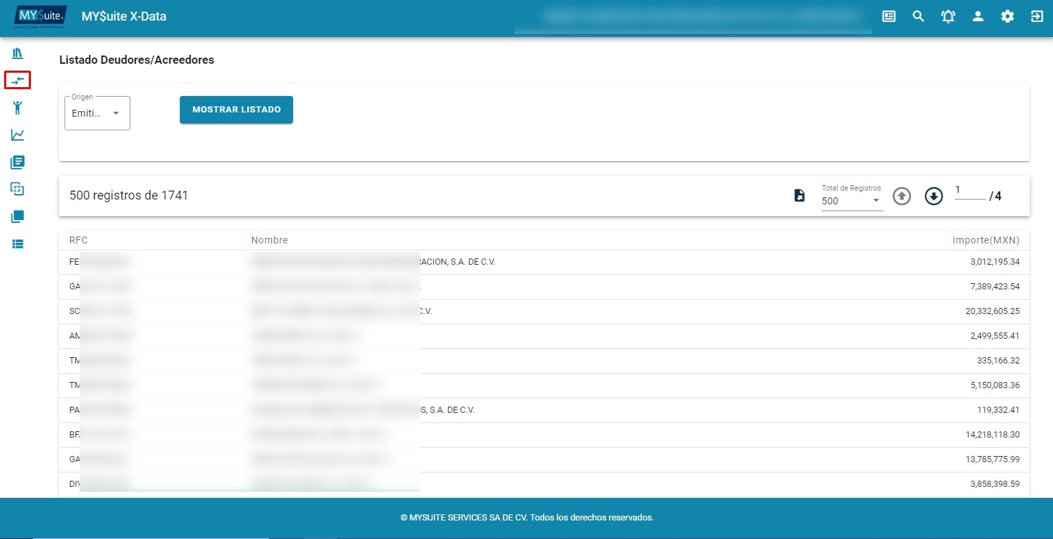 Usted podrá obtener un listado de sus Deudores = Emitidos y de sus Acreedores = Recibidos, dependiendo del filtro "Origen" aplicado. La información considerada en este reporte es conforme al año actual.