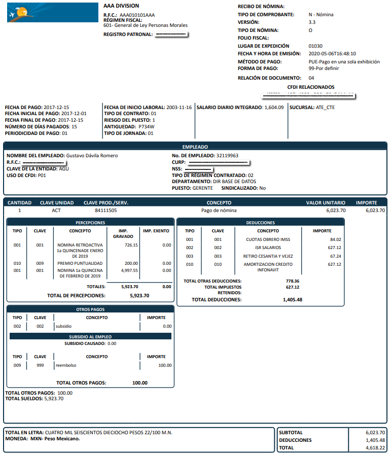 NOTA. Si el recibo que se encuentra elaborando es de asimilados a salarios se omitirá el campo “Núm. De Seguridad Social”.