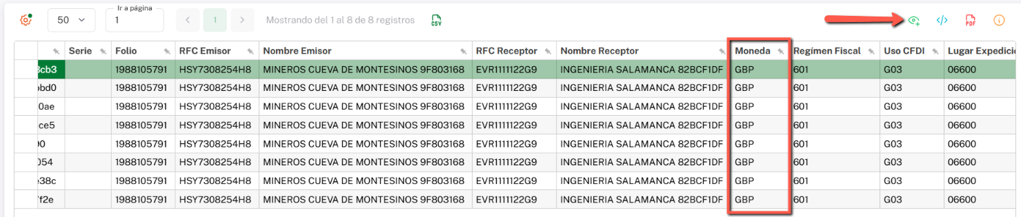 En resumen, cualquier CFDI emitido o recibido cuya Moneda difiera de lo configurado en Parámetros de Auditoría será mostrado en este reporte.