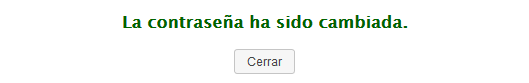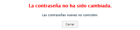Solo da clic en el botón de “Cerrar” y podrás repetir los pasos anteriores teniendo cuidado de capturar las contraseñas correctamente hasta confirmar el cambio de contraseña.