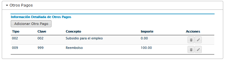 12 En caso de existir otros pagos en el Recibo de Nómina deberás abrir la sección “Otros Pagos” y dar clic en el botón “Adicionar Otro Pago”.