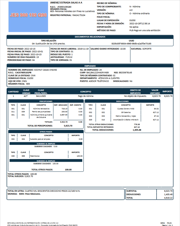 NOTA. Si el recibo que se encuentra elaborando es de asimilados a salarios se omitirá el campo “Núm. De Seguridad Social”.