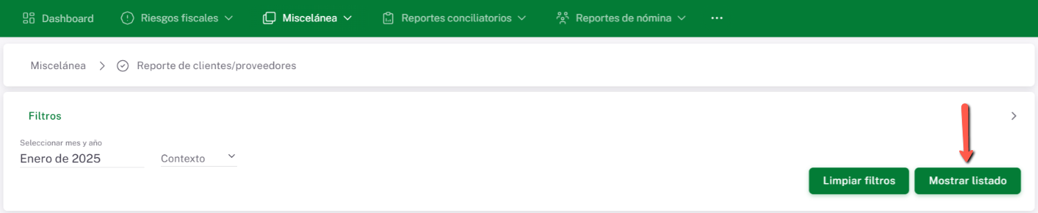 Una vez definidos estos filtros, haz clic en el botón “Mostrar Listado” para visualizar la información.