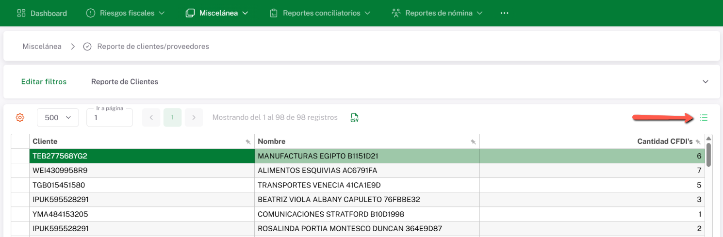 Considera dar un clic sobre cada uno de los registros para poder acceder a la funcionalidad “Ver detalle” , esta opción te permitirá ver los CFDI involucrados con el cliente o proveedor.