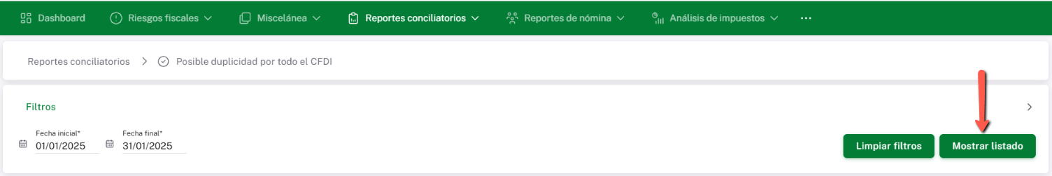 Importante: El rango de fechas debe pertenecer a un mismo año. No es posible consultar periodos que abarquen más de un ejercicio anual.
