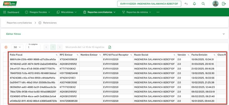 reporte nos mostrará todos los CFDI´s de Retenciones emitidas o recibidas,