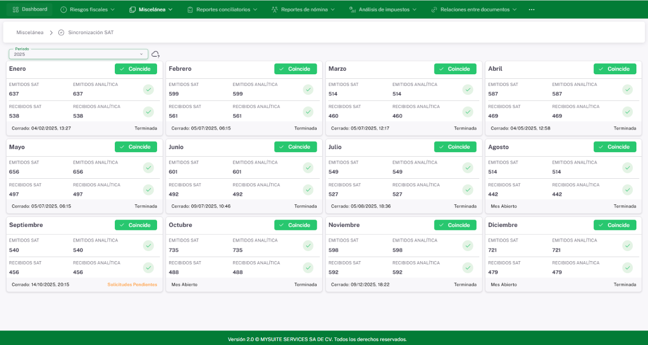 Botón Coincide: Indica que la información está sincronizada al 100% con el SAT.