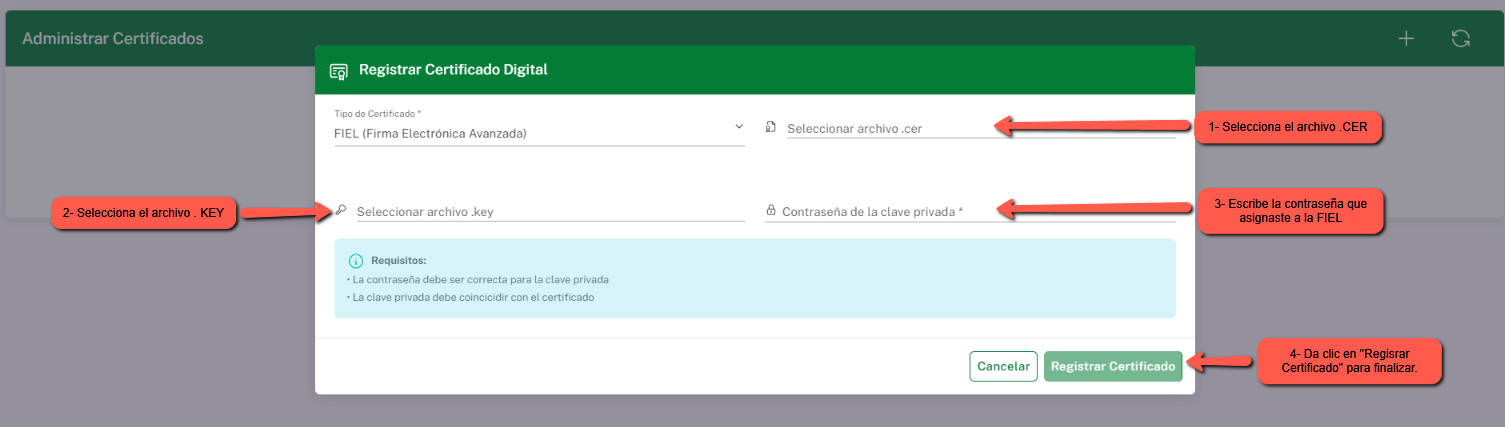 - Cargar los archivos de la FIEL: