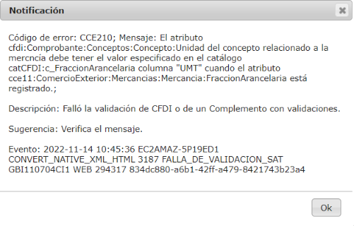 Si al emitir un comprobante con Complemento de Comercio Exterior te aparece la notificación: