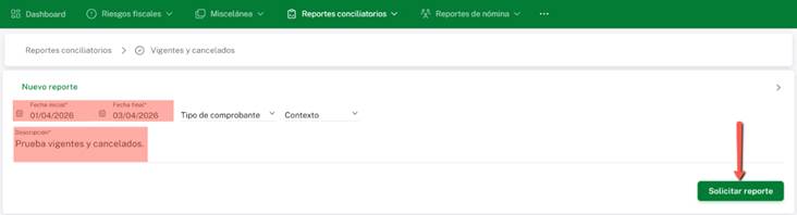 reporte se solicita bajo demanda y para para genéralo debes dar clic en la